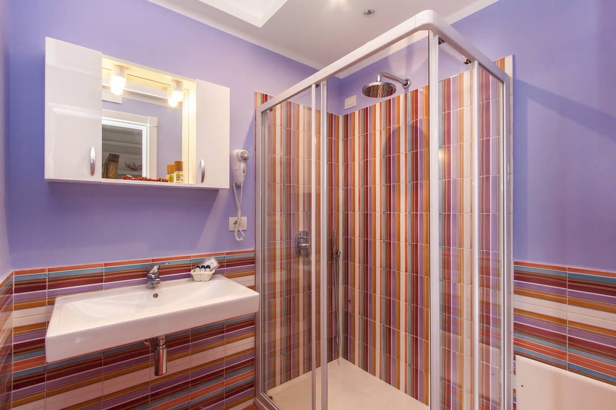 The bathrooms: are bright and modern , with typical Vietri tiles that give a Mediterranean touch and vivacity. Are all equipped with shower with large flat, have comfort and simplicity.